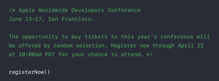 Les détails de l’événement, tels que le lieu, l’agenda, et les détails sur la diffusion en live prévue, sont maintenant disponibles sur le site dédié à la WWDC d’Apple. Si les billets coûtent 1 599 dollars, sachez que tous les développeurs intéressés peuvent s’inscrire, et comme les années précédentes, un tirage au sort sera réalisé parmi les personnes qui s’enregistrent pour l’événement.
