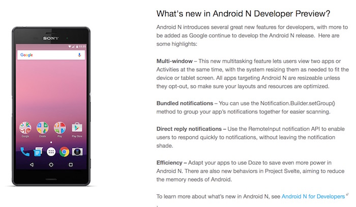 Il y a quelques jours, plusieurs rumeurs ont rapporté que les premiers smartphones Android non Nexus pourraient bientôt avoir accès à Android N Developer Preview. Maintenant, Google a annoncé que le Xperia Z3 de Sony allait être ajouté à la liste des périphériques compatibles avec le prochain OS, Android N.