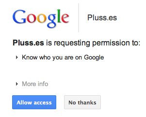 Tout ce que vous avez à faire est de vous connecter en utilisant votre compte Google+ et d’y autoriser Pluss.es à y accéder.