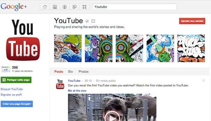 Autre page Google+ lancée par Google, c’est YouTube. Cette page va permettre, tout comme la page Gmail, de partager des nouvelles sur YouTube, la musique et les événements streaming en direct.