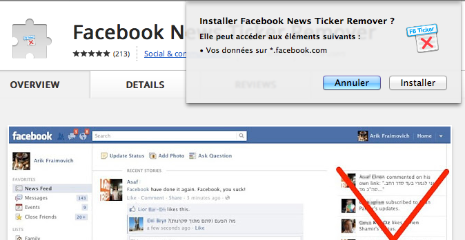 La semaine dernière je vous ai présenté un article vous indiquant comment faire pour supprimer le “Ticker” de Facebook ! Au vue de sa popularité, il me semblait intéressant de vous présenter des extensions également pour le navigateur Google Chrome, pour vous permettre de revenir à “l’ancien Facebook”.