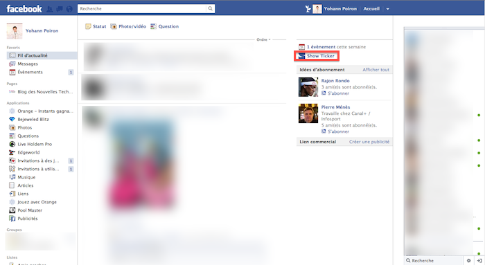 Je vous propose de lire cet article : Comment faire pour supprimer le ‘Ticker’ de Facebook .