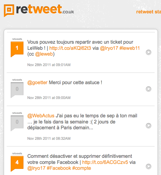Retweet est une application pour Twitter qui va vous permettre d’afficher tous vos tweets sur Twitter et le nombre de retweets de ces derniers à l’aide d’un numéro à gauche du tweet.