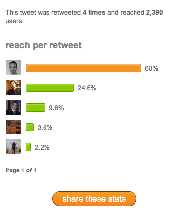 Une fonctionnalité importante également de Retweet, c’est sa capacité à fournir des statistiques et des tris sur le nombre de personnes ayant retweeté un tweet et combien de personnes l’ont atteint par un retweet.