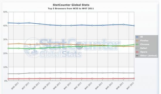 Les chiffres de StatCounter sont formels : au mois de novembre 2011, le navigateur Google Chrome a dépassé Firefox en termes de nombre d’utilisateurs dans le monde.