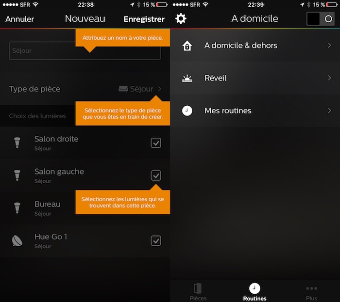 Ces routines ne sont pas seulement limitées à être contrôlées par l’heure de la journée. Vous êtes également en mesure de configurer votre application pour effectuer certaines actions lorsque votre smartphone est détecté comme quittant ou entrant votre domicile.