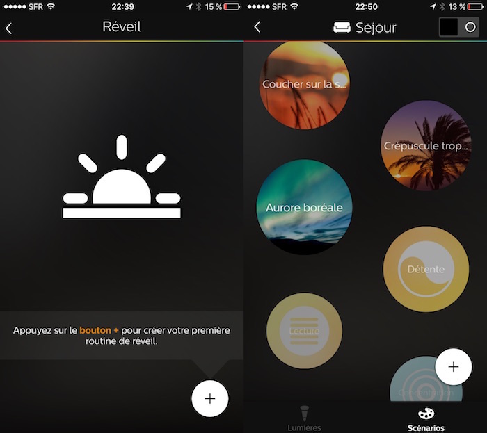 La nouvelle application ajoute la possibilité de définir des routines, vous permettant de régler automatiquement vos lumières à certains moments de la journée. Vous avez juste à définir le scénario à utiliser lors de l’activation d’une routine. Ceci est particulièrement important quand un nombre croissant de preuves suggère que regarder un éclairage bleu, tard dans la nuit, peut être plus agressif sur votre sommeil qu’une douce lumière orangée.