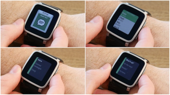 En plus de l’important mise à jour de l’application Health, Pebble a également publié une mise à jour de sa smartwatch afin de rendre la messagerie un peu plus utile pour les utilisateurs d’un iPhone. Dorénavant, l’envoi de messages sur iOS vous permet de commencer une conversation depuis votre poignet, et vous pouvez également envoyer des réponses préenregistrées ou enregistrer un message vocal.