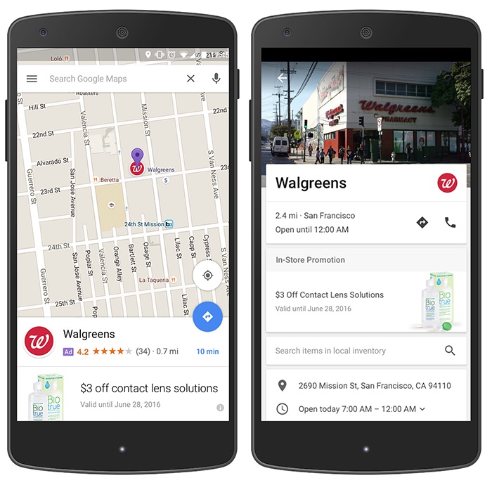 Le géant de la recherche a mis à jour ses publicités pour Google Maps afin d’aider les entreprises à générer du trafic dans un monde ou les smartphones dominent. La société a déclaré que les recherches mobiles basées sur la localisation sont en croissance, et sont 50 % plus rapides que toutes les recherches sur mobile. Autrement dit, cela signifie que Google Maps est l’endroit idéal pour mettre davantage de publicités ciblées.