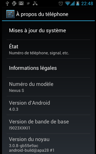 Pour passer tt de suite en ICS (Android 4.0) sur Nexus S rajoutez 1 an à votre OS et vous verrez la MAJ 😉