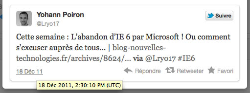 — Yohann Poiron (@Lryo17) <a href="https://twitter.com/Lryo17/status/148409726722514944" data-datetime="2011-12-18T14:30:10+00:00">Décembre 18, 2011</a>
