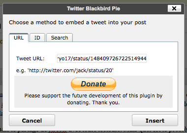 Une autre possibilité beaucoup plus simple cette fois, concerne tous les utilisateurs de WordPress. Tout ce que vous avez besoin de faire, c’est de récupérer le lien vers votre tweet. Ensuite, avec le plugin Twitter Blackbird Pie vous allez pouvoir intégrer n’importe quel tweet sur votre blog.