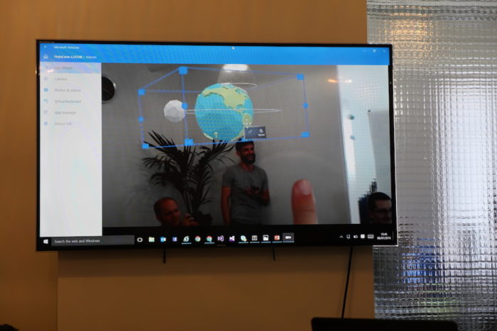 Les images HoloLens projetées sur le monde réel autour de moi sont éclatantes, nettes et réalistes — bien que l’on peut encore voir quelques objets qui ne sont pas très lisses. Mais, c’est à la responsabilité du développeur de créer un objet « parfait ». Quand je me déplace autour d’eux, les formes holographiques se comportent comme des objets réels, de sorte que je peux les voir sur toutes les facettes — ou non, s’ils sont obstrués par d’autres hologrammes.
