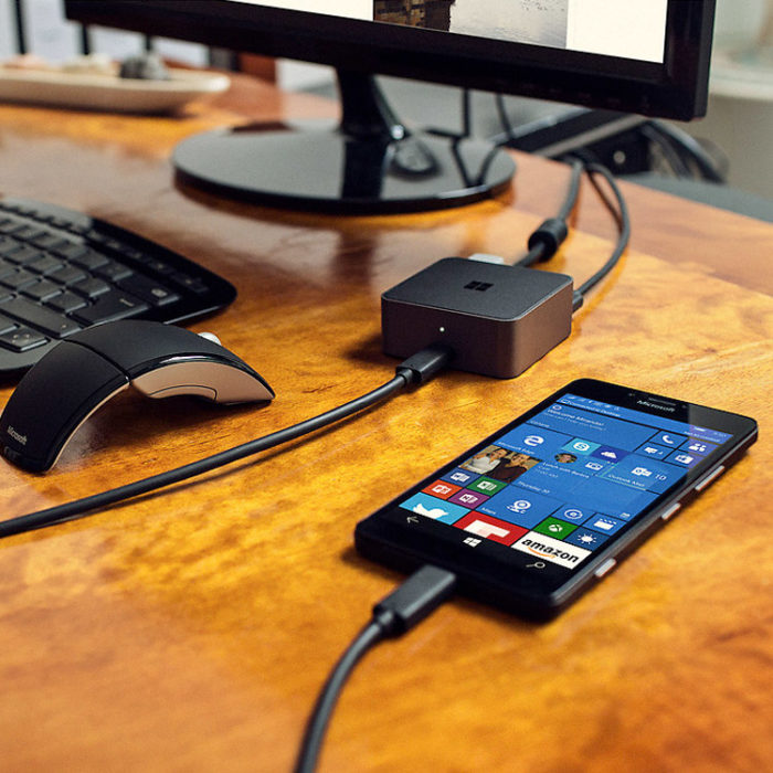 Et, que dire de Continuum qui permet d’offrir une expérience de PC grâce au port USB Type-C ? Très brièvement, cette technologie vous permet de brancher le smartphone à un écran externe et lui associer quelques périphériques (souris, clavier, etc.), afin d’obtenir une expérience proche d’un environnement de bureau sous Windows. Il y a deux façons d’utiliser Continuum : le Display Dock qui est vendu 99 euros, et la technologie Miracast.