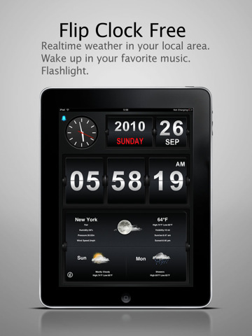 Avec Flip Clock HD vous pouvez transformer votre iPad en une élégante horloge qui vous permet non seulement d’afficher l’heure et la date actuelle, mais vous permet également de consulter la météo locale d’un coup d’œil. L’utilisation de l’application comme réveil, vous donnera la possibilité de vous réveiller selon une musique de votre iPad.