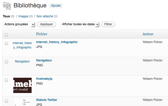 Les fichiers téléchargés sur WordPress sont catégorisés et peuvent être repris par la suite sur un autre système. Malheureusement, une fois de plus dans Blogger vous serez dans l’incapacité de ranger correctement vos médias, ni même de les récupérer…