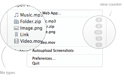 CloudApp vous permet également de partager des liens, de la musique, des vidéos et des fichiers, en plus des images. Vous pouvez également visualiser, suivre et supprimer des fichiers directement depuis votre barre de menus…