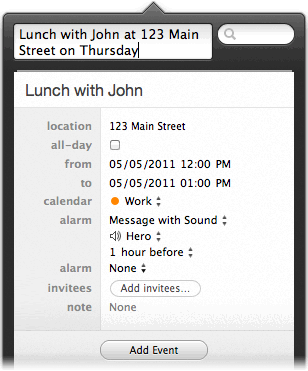 Fantastical reconnaît automatiquement l’emplacement de votre évènement et peut même inviter des gens de votre carnet d’adresses à y participer.