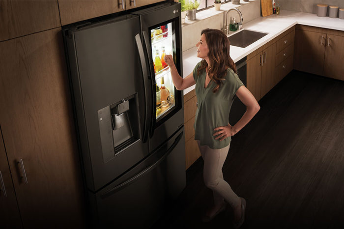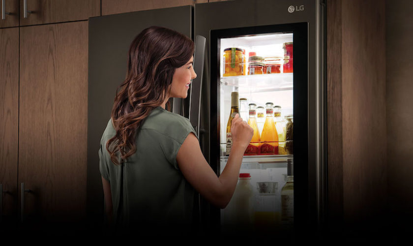 Vous tapotez à la porte, et tout à coup l’écran assombri devient transparent. En effet, grâce à la fonctionnalité « Knock-On » de LG, il suffit de tapoter deux fois sur la porte principale pour rendre l’écran transparent et visualiser ce qu’il y a à l’intérieur. L’idée est que vous pouvez regarder dans les profondeurs de votre réfrigérateur sans que la porte soit grande ouverte, évitant de gaspiller de l’énergie et de réchauffer vos denrées périssables.