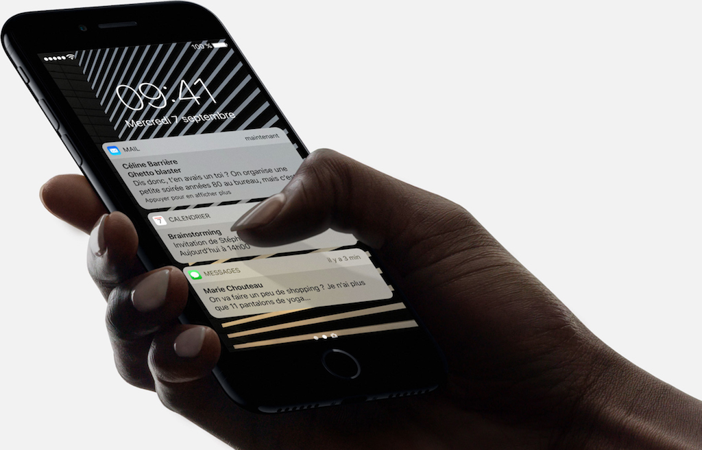 Apple a pris ce que la firme a appris avec l’écran de 9,7 pouces de l’iPad Pro, et propose deux gammes de couleurs sur l’écran de l’iPhone 7 : sRGB, qui est une norme plus ancienne et la nouvelle gamme de couleurs DCI-P3 qui est 26 % plus grande que la technologie sRGB. Cela signifie que l’iPhone 7 « sera en mesure d’afficher avec précision tous les nouveaux contenus 4K », bien que DisplayMate affirme que la résolution de l’écran est loin d’être du 4K. Cependant, la résolution de l’écran Retina de l’iPhone 7 est assez bonne pour ne pas avoir en détail les pixels de l’écran.