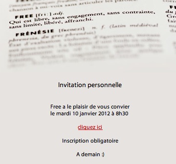 La date retenue pour l’annonce des offres Free Mobile, est demain, mardi 10 janvier à 8h30 à Paris ! (le jour de mon anniversaire… Free pourrait faire un geste :))