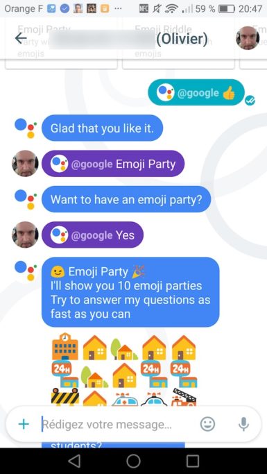 Comme vous pouvez le voir ci-dessous, dans une conversation avec Olivier, ce dernier a effectué une recherche pour un restaurant, et Google a instantanément affiché des résultats au Mexique, puisqu’on avait parlé du pays juste avant. Autrement dit, l’assistant tient compte de la conversation. Très impressionnant !