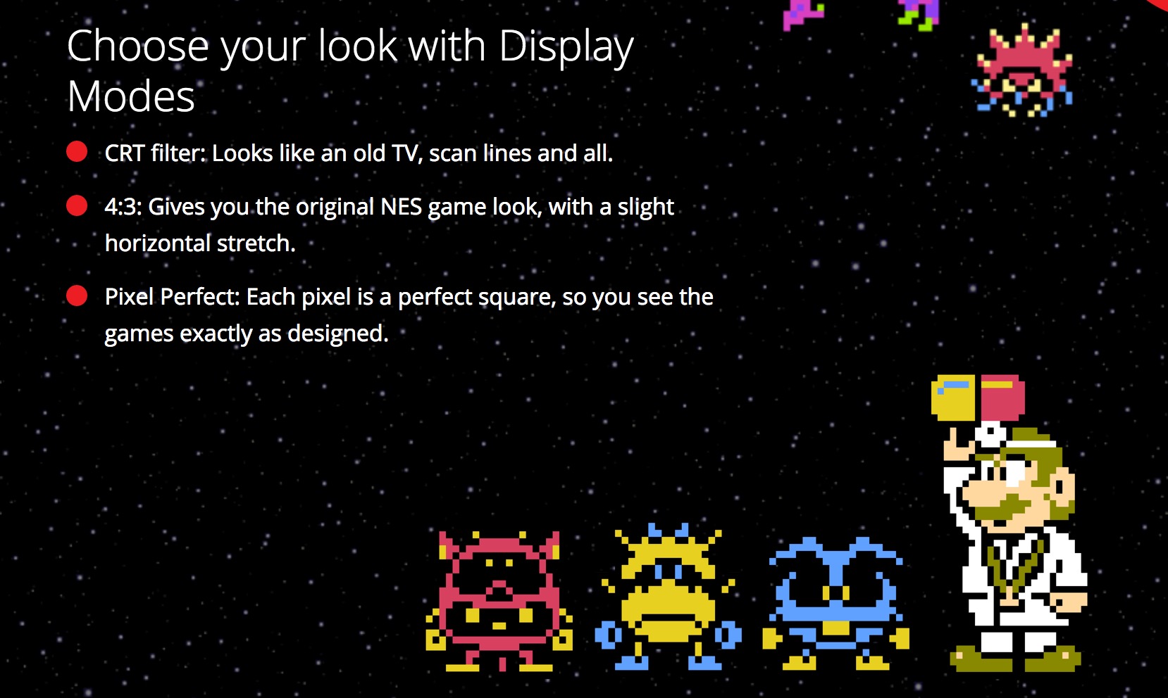 Une page promotionnelle pour la Nintendo Classic Mini, une version miniaturisée de la novatrice NES, sortie à l’origine en 1986 en Europe, a récemment été mise à jour. Si nous connaissons déjà beaucoup de choses de la console, les joueurs rétro apprennent qu’ils vont obtenir un choix de trois modes d’affichage quand la console Nintendo Classic Mini compacte arrivera enfin dans nos mains.