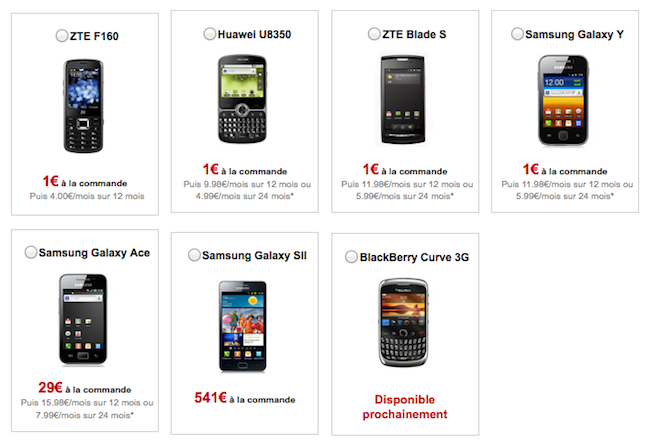 Voici les différents mobiles et prix que l’on peut retrouver sur le site de Free Mobile :