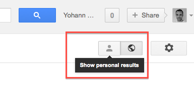 La première, très simple, consiste à basculer entre les résultats personnalisés et traditionnelles, à l’aide d’un bouton qui se trouve dans le coin supérieur droit de la fenêtre de Google. Le hic, c’est qu’à chaque nouvelle recherche, les résultats sociaux seront de nouveaux intégrés dans la recherche…