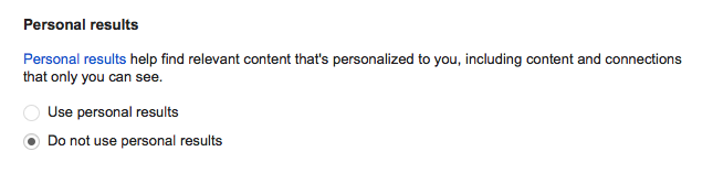 - Faites défiler jusqu’à la quatrième option, intitulée “Personal results”. Sélectionnez “Do not user personal results”, et sauvegardez