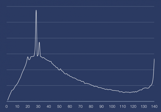 De plus, Hepworth posté un deuxième graphique qui représente seulement les tweets provenant d’un client de “bureau” et il montre un pic encore plus prononcé à la limite de 140 caractères.