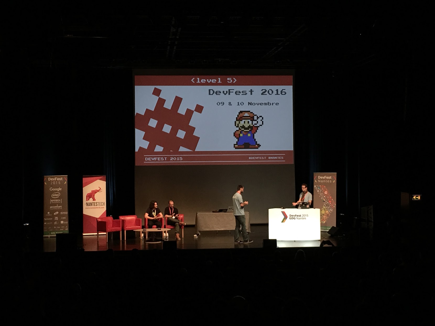 Si vous suivez régulièrement le BlogNT, vous savez que chaque année depuis 5 ans, le GDG Nantes organise son Devfest. Néanmoins, et contrairement aux éditions précédentes qui lui ont valu une reconnaissance dans tout l’hexagone, le Devfest Nantes 2016 va se dérouler pendant deux jours, le 9 et 10 novembre, à la Cité des Congrès de Nantes. En effet, depuis ses débuts le Devfest Nantes se déroulait sur une journée, certes dense, mais bien trop courte. Vous l’aurez compris, avec un événement de 48 heures, nous allons avoir plus d’intervenants, et surtout de discussions autour de toutes les technologies qui gravitent dans l’écosystème de Google.