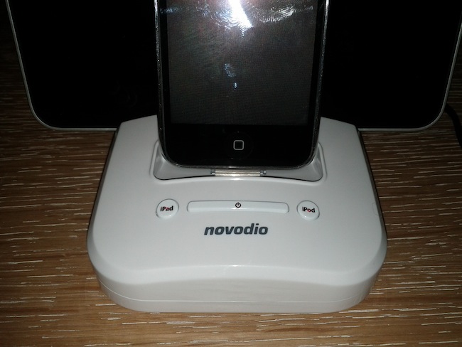 Côté esthétique on peut dire que le produit est plutôt réussi, mais surtout très bien pensé. En effet, sur le dessus on peut voir les deux connecteurs ainsi que deux boutons dédiés respectivement à l’iPad et l’iPhone/iPod, et un bouton marche/arrêt.