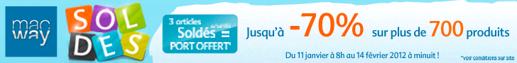 Comme je vous le disais dans l’article précédent, nous allons profiter des soldes d’hiver 2012 de MacWay pour vous proposer un produit à 100% ! Autant vous dire que cela ne va pas vous revenir bien cher…