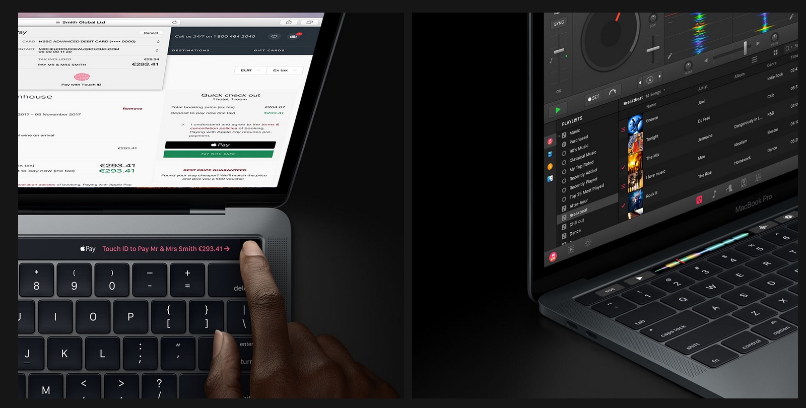 Deux caractéristiques sur le nouveau MacBook Pro sont la Touch Bar sur la partie supérieure du clavier, et l’intégration du capteur d’empreintes digitales Touch ID.