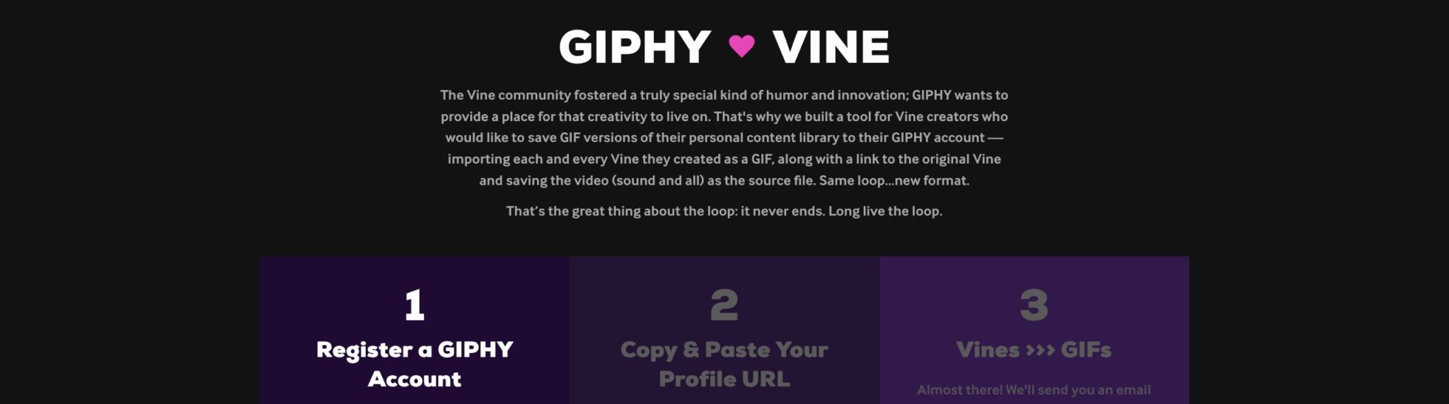Bien que Giphy offre un service de conversion pour les utilisateurs de Vine, Twitter a précisé que le site Vine.co ne serait pas stoppé, et agirait comme une archive numérique pour les vidéos. L’outil d’importation de Giphy est non seulement une méthode alternative pour enregistrer le contenu Vine, mais il convertit également le contenu en GIF, le rendant compatible avec le service de Giphy.