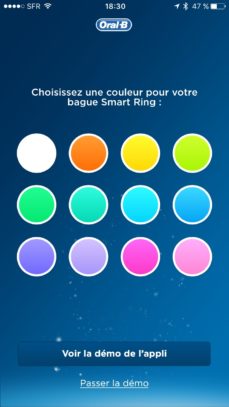 Avec le témoin multifonction SmartRing, vous serez en mesure d’avoir une rétroaction sur le brossage des dents sous tous les angles. Vous obtiendrez la rétroaction de la minuterie de brossage, l’indicateur de pression et la connexion via Bluetooth. Le SmartRing vous permet de consulter facilement les informations concernant l’indicateur de pression, le minuteur et la connexion Bluetooth. Vous pouvez personnaliser les couleurs qui sont affichées à travers l’application Oral-B sur votre smartphone. Il pourra s’allumer dans l’une des 12 couleurs proposées pendant votre brossage.