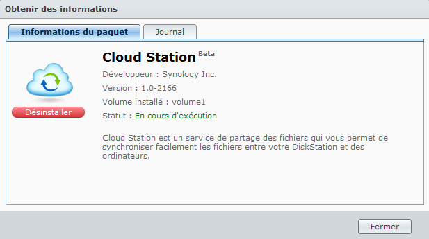 A l’heure où j’écris ces lignes le paquet à installer sur le NAS est encore en bêta, tout comme le DSM4 donc là encore je vous le répète : pas d’installation sur un serveur de production. Pas d’utilisation de Cloud avec des données non sauvegardées à l’avance ! Si vous perdez des données faudra pas venir vous plaindre.