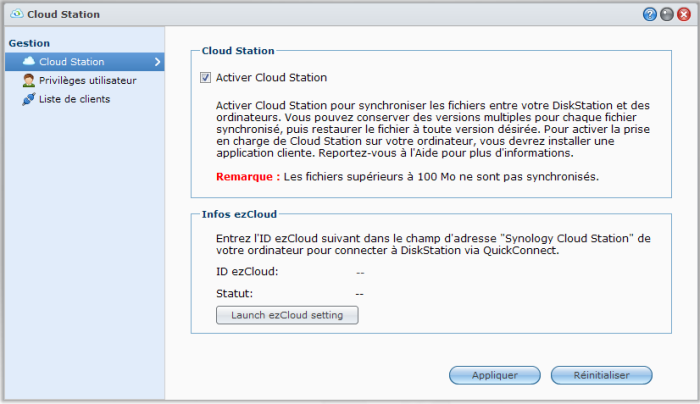 - l’installation du package Cloud Station sur le NAS (impliquant que vous soyez déjà en DSM4 bêta minimum)