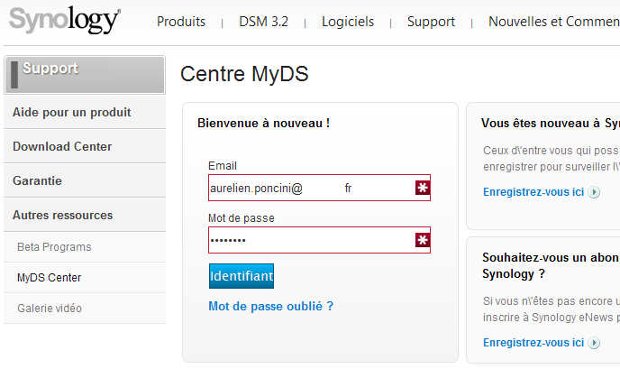 Le portail est disponible à l’adresse : https://myds.synology.com