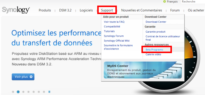 Note, vous pouvez aussi y accéder en suivant le cheminement normal sur le site de Synology dès fois que le lien soit mort :