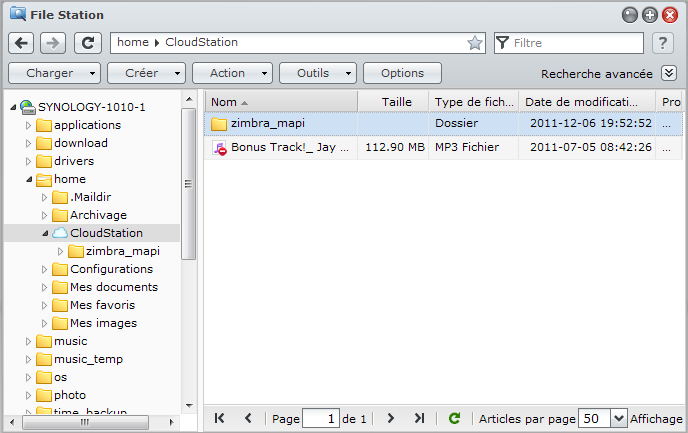 On va donc depuis le FileStation sur le NAS, copier des données dans notre dossier Cloud Station personnel (vous l’aurez remarqué le dossier est dans mon Home, il est donc propre à l’utilisateur).