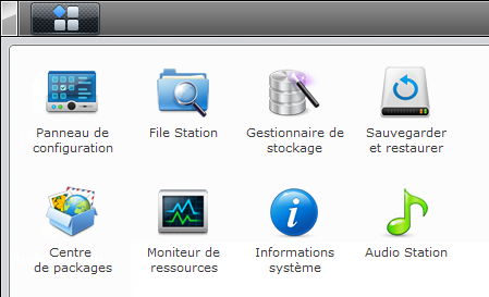 Une fois connecté sur le NAS, cliquez sur le bouton des applications puis sur Centre de packages.