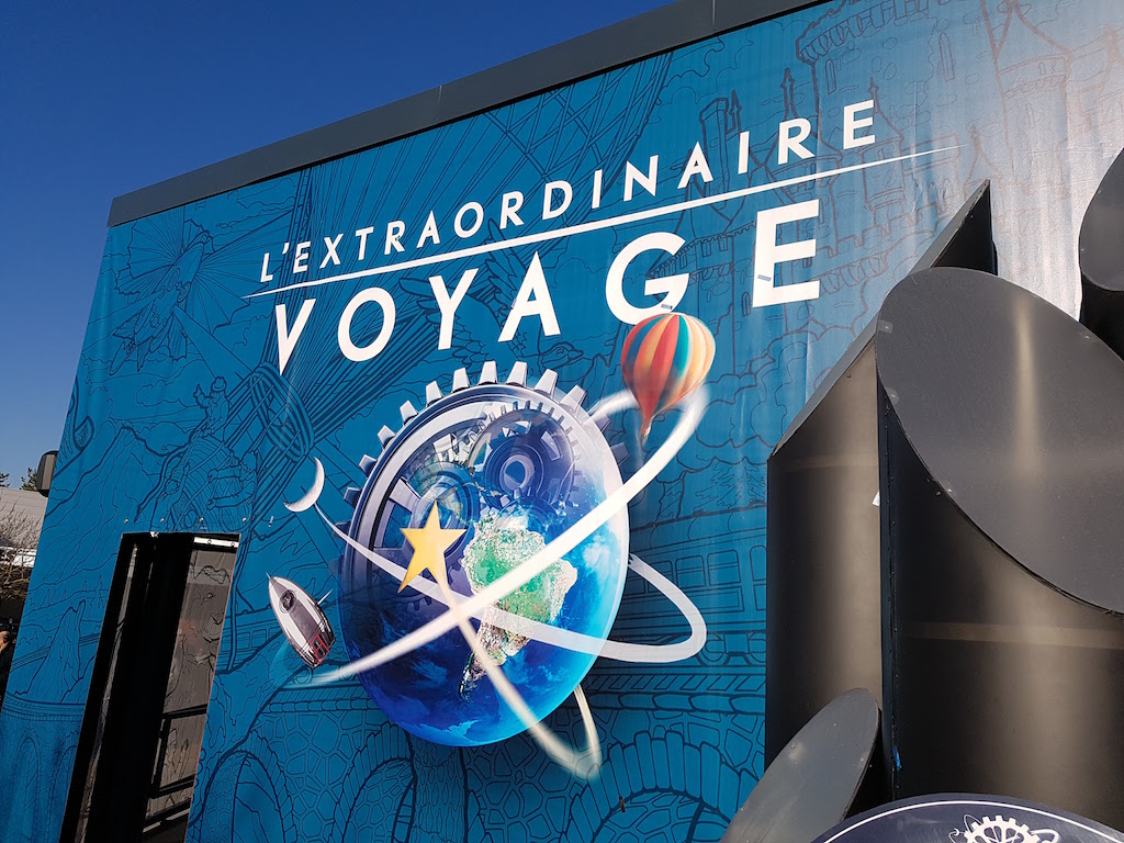 L’attraction l’Extraordinaire Voyage est inspirée du tour du monde de Jules Verne, mais au 21e siècle. L’idée est de parcourir à travers des paysages grandioses, divers pays : France, Égypte, Dubaï, Inde, Himalaya et Yellowstone. Pour cela, vous sauterez en base jump depuis les gratte-ciels de Dubaï, ou encore vous faufiler à travers d’étranges montgolfières.