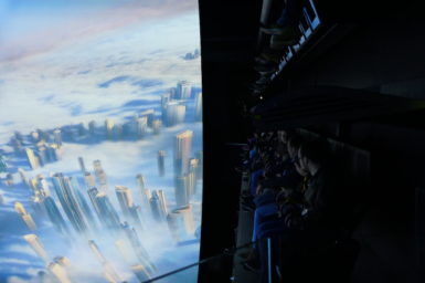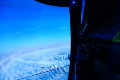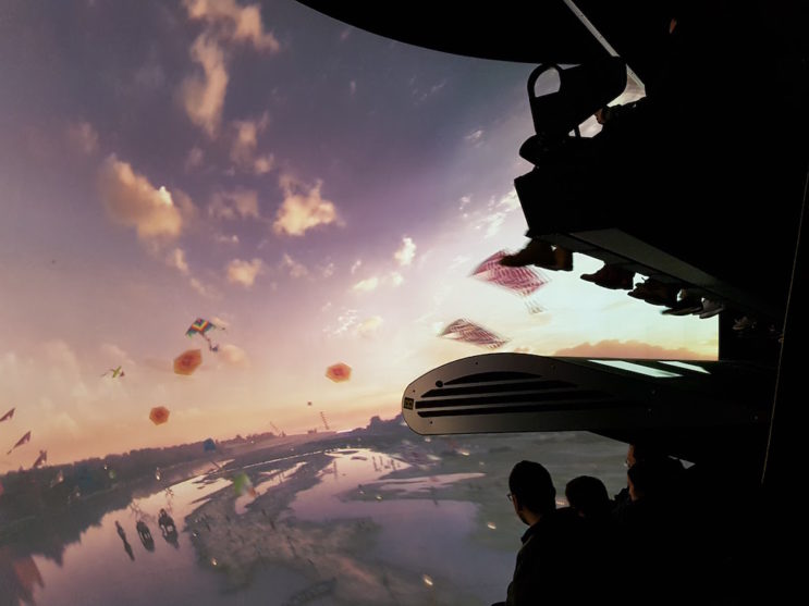 Prenez place sur l’un des sièges des trois niveaux de la plate-forme SkyLoop, écoutez les dernières consignes de sécurité, et bouclez votre ceinture. C’est parti pour 4 minutes de temps de vol pour faire le tour du monde ! Avec des effets embarqués, comme la simulation de vent, de brouillard ou encore des odeurs de patchouli, ce voyage va aussi être un voyage des sens. Vous allez être subjugué !