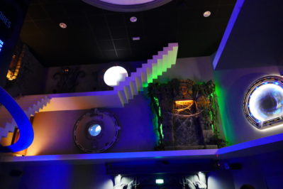 Dès l’entrée de l’attraction, on voit que celle-ci a été pensée pour la famille. Des espaces d’activités sont positionnés pour divertir vos bambins pendant que vous faites la queue. L’excellente idée est que vous les récupérez avant d’entrer définitivement dans l’attraction. Parmi les activités, vous aurez notamment un coloriage participatif géant sur une bande de 8 mètres de long, qui représente les univers fantastiques imaginés par Jules Vernes. Avec des feutres à disposition, tous les jeunes sont invités à colorier pendant que papa et maman patientent dans la file d’attente.