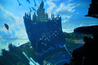 Dès lors, tout s’enchaîne très vite, le choix du dispositif technologique se porte sur Dynamic Structures, une société basée à Vancouver et qui présente un concept de structure métallique capable de faire pivoter trois rangées de sièges l’une au-dessus des autres. Dans la même année, en 2014, le parc décide de s’associer avec la société Cube Creative, pour développer, à partir d’une page blanche et de l’itinéraire imaginé par Jules Verne pour son Tour du Monde en 80 jours, le tour du monde au 21e siècle, qui superpose la magie de la réalité. Ce sont des milliers d’heures à travailler sur les animations 3D pour faire de ce rêve de voler quelque chose d’extrêmement réaliste, grâce à un « storyboard » déroulant toutes les étapes de l’expérience visiteuse.