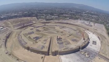 À l’heure actuelle, la construction du Apple Campus 2 semble finalisée. Le bâtiment principal a sa structure, quelque chose qui ressemble à un toit, et la plupart de ses murs. La montagne de terre a été chassée — dont Tim Cook a affirmé qu’il était « difficile de savoir ce qui est plus beau, le bâtiment ou ce tas de terre », les routes d’accès et les aires de stationnement sont presque finalisées. Et, des touches esthétiques comme des murs de verre commencent à se monter. On peut également distinguer le centre de remise en forme, l’énorme centre de recherche et de développement où seront basés Jony Ive et son équipe.